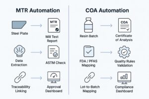 Sustainability edge: In plastics, COA automation supports PFAS bans and recyclability claims; in metals, MTR automation supports ESG-linked steel supply chain audits.